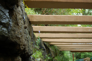 These are the stairs that have a ship-like hatch at the top and the lead right down to the stream and falls so the family could swim and fish and feel like the stream was right in the living space.